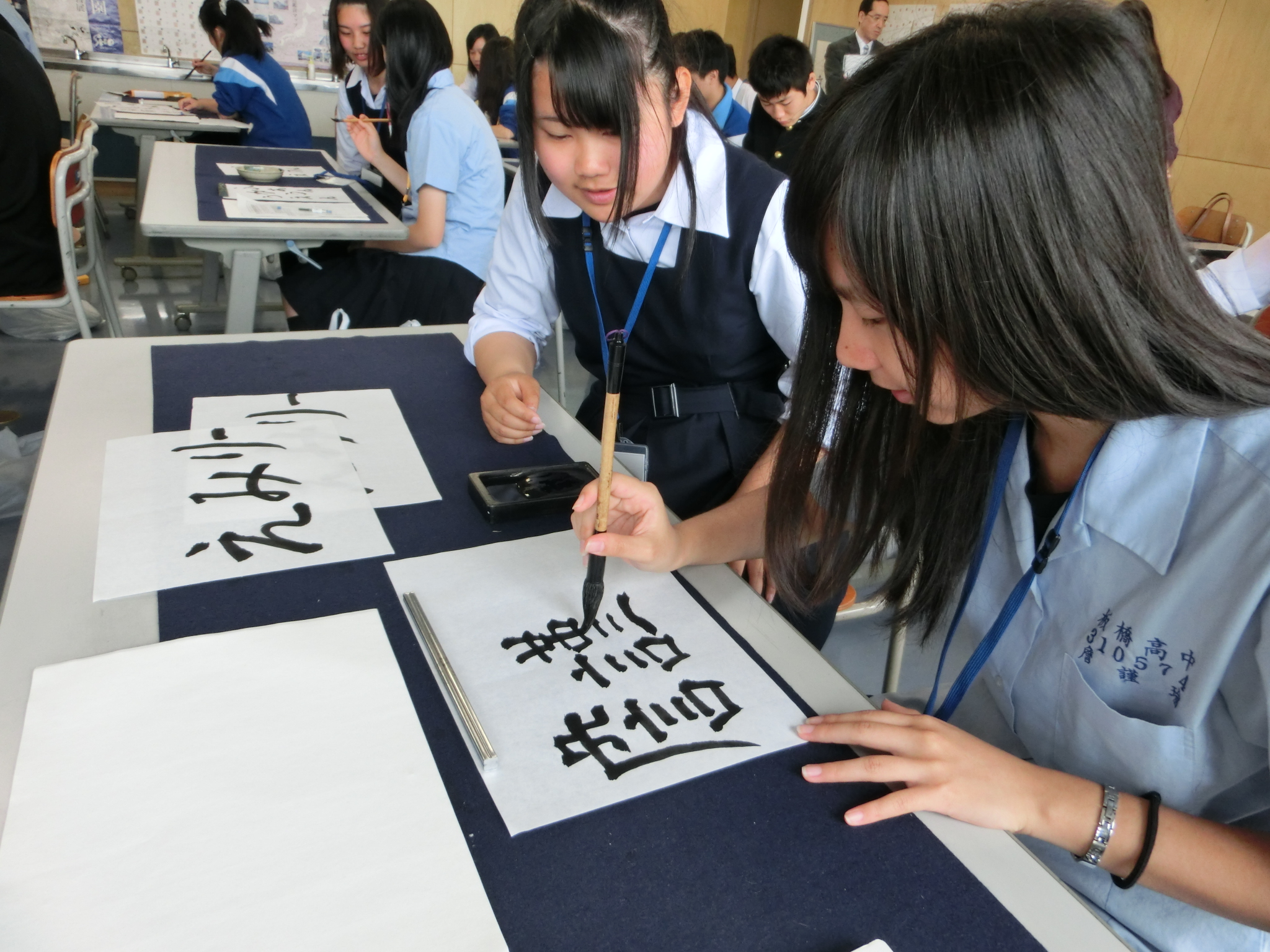 Then, a third-year student played Shamisen (Japanese traditional guitar), students of the kendo club gave them a kendo practice performance, and all of them did shodo (calligraphy) together. Then, Banqiao students showed us wonderful song and dance performances. Some of SGH students performed a Yosakoi dance. At lunch time, they ate lunch together at our cafeteria.