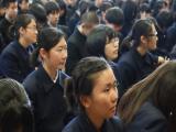 講演は、生徒との対話も取り入れられながらすすめられ、今後、探究学習に取り組むための基礎となる考え方を提示していただきました。ニュートンの「巨人の肩の上に乗る」というお話が印象的でした。課題研究とは、インターネットや書籍で見つけたことを書き並べるだけではなく、先人たちが行った研究の業績を踏まえた上で、自分でデータを収集・検証し、問題に対する解決方法を考える(全員が納得する解決方法はないかもしれない)ということをお話いただきました。